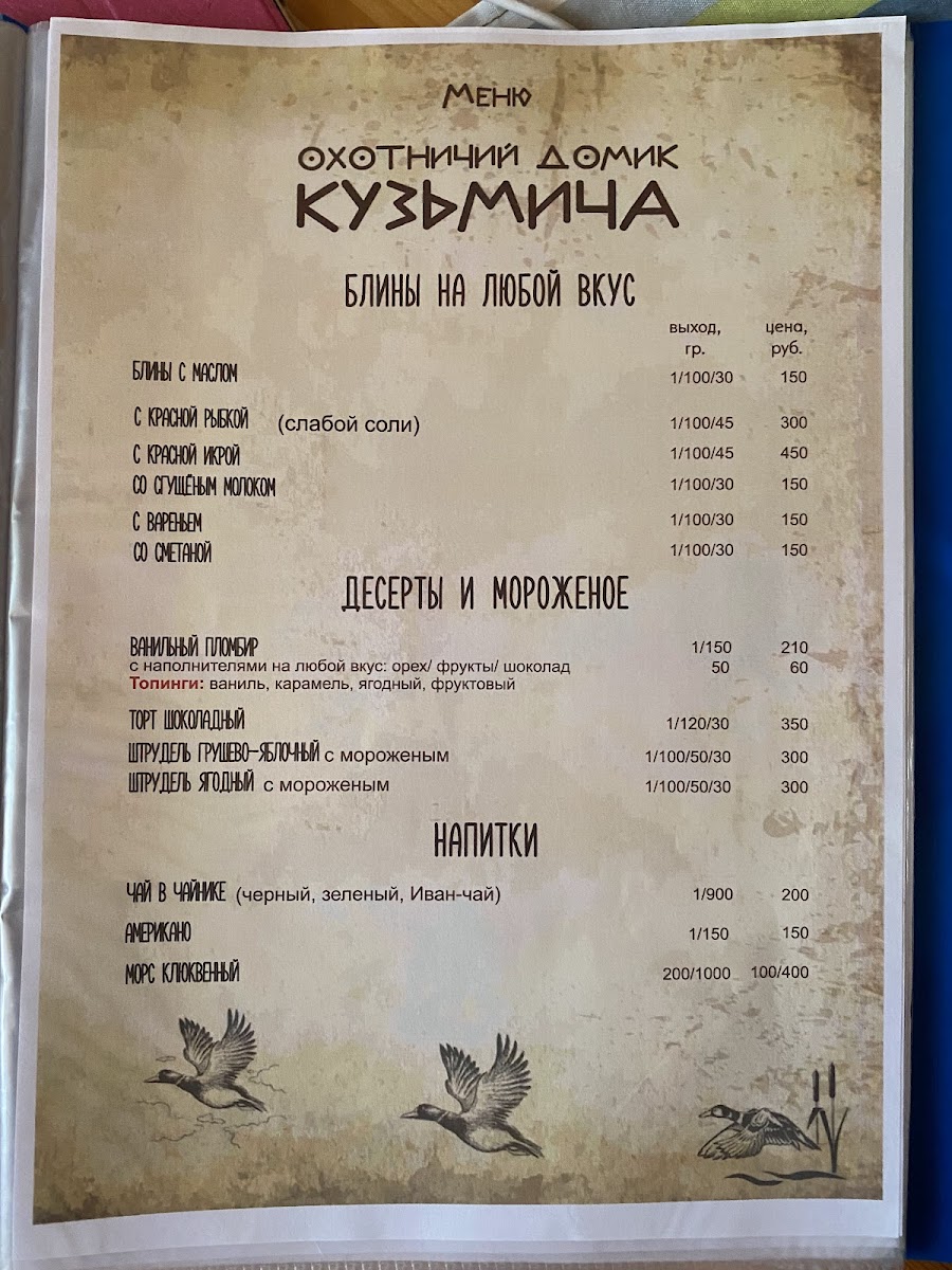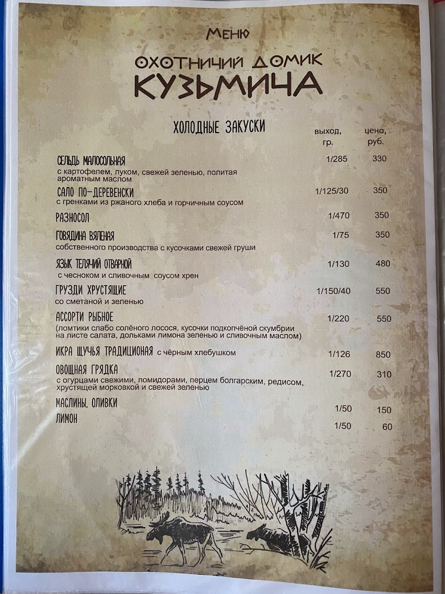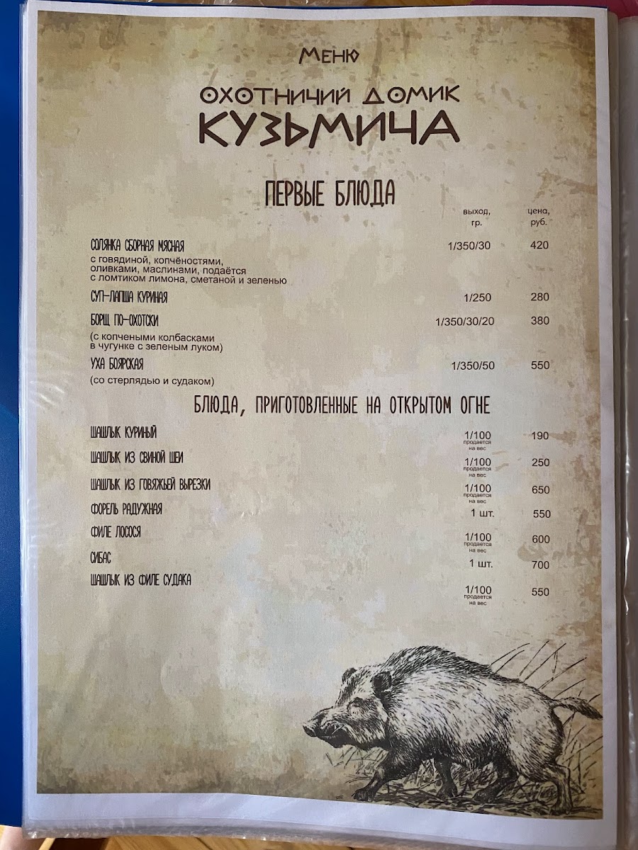 The charm of Okhotnichiy Domik Kuz'micha doesn’t stop at its food and ambiance; it has a local talisman, affectionately named Kuz'mich, which adds a touch of homely spirit to the café. This inviting feature helps to cultivate a warm, community vibe that resonates with locals and travelers alike.